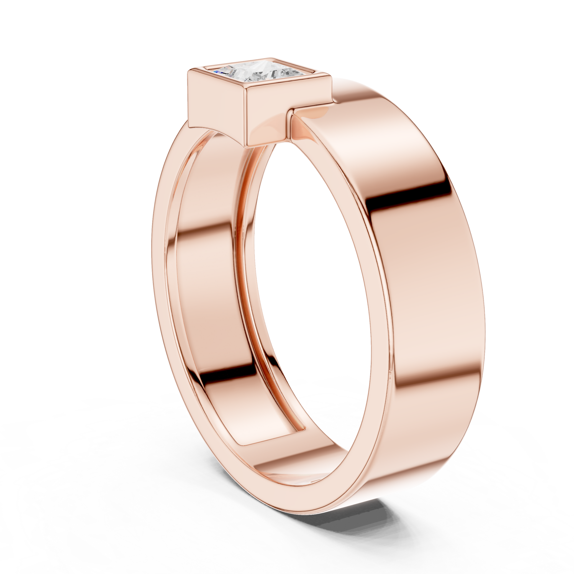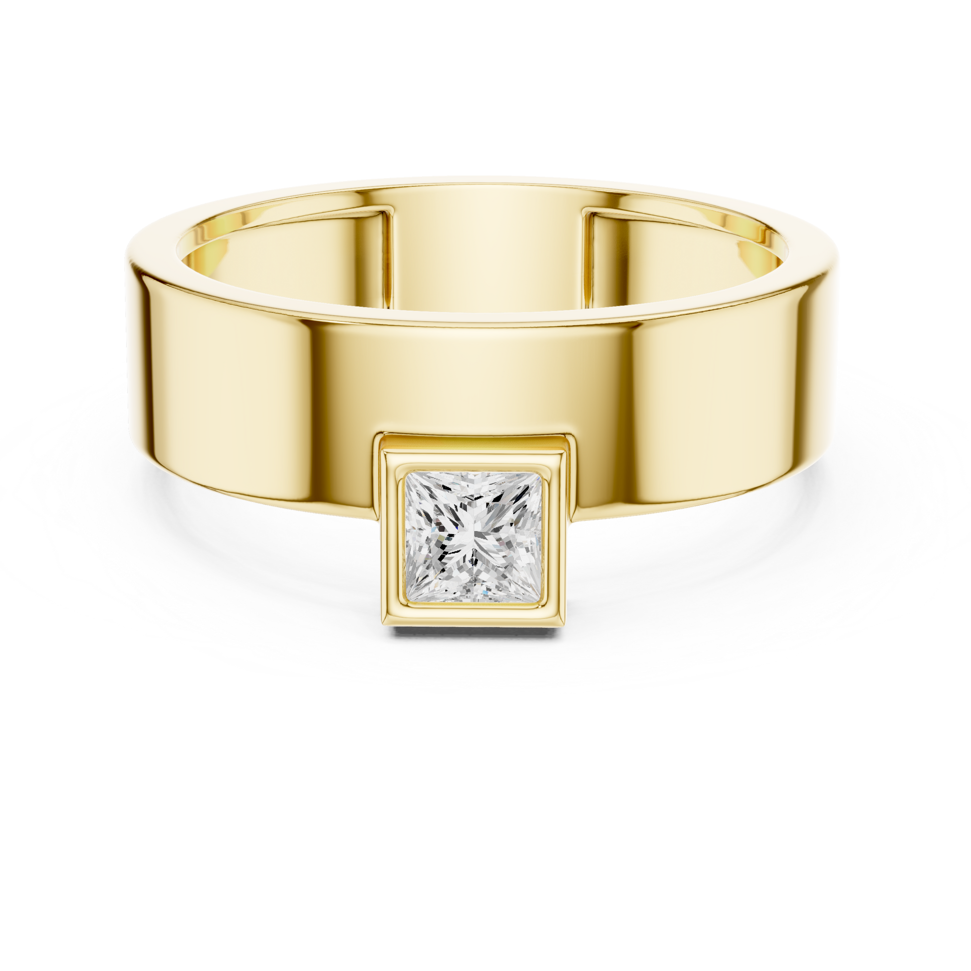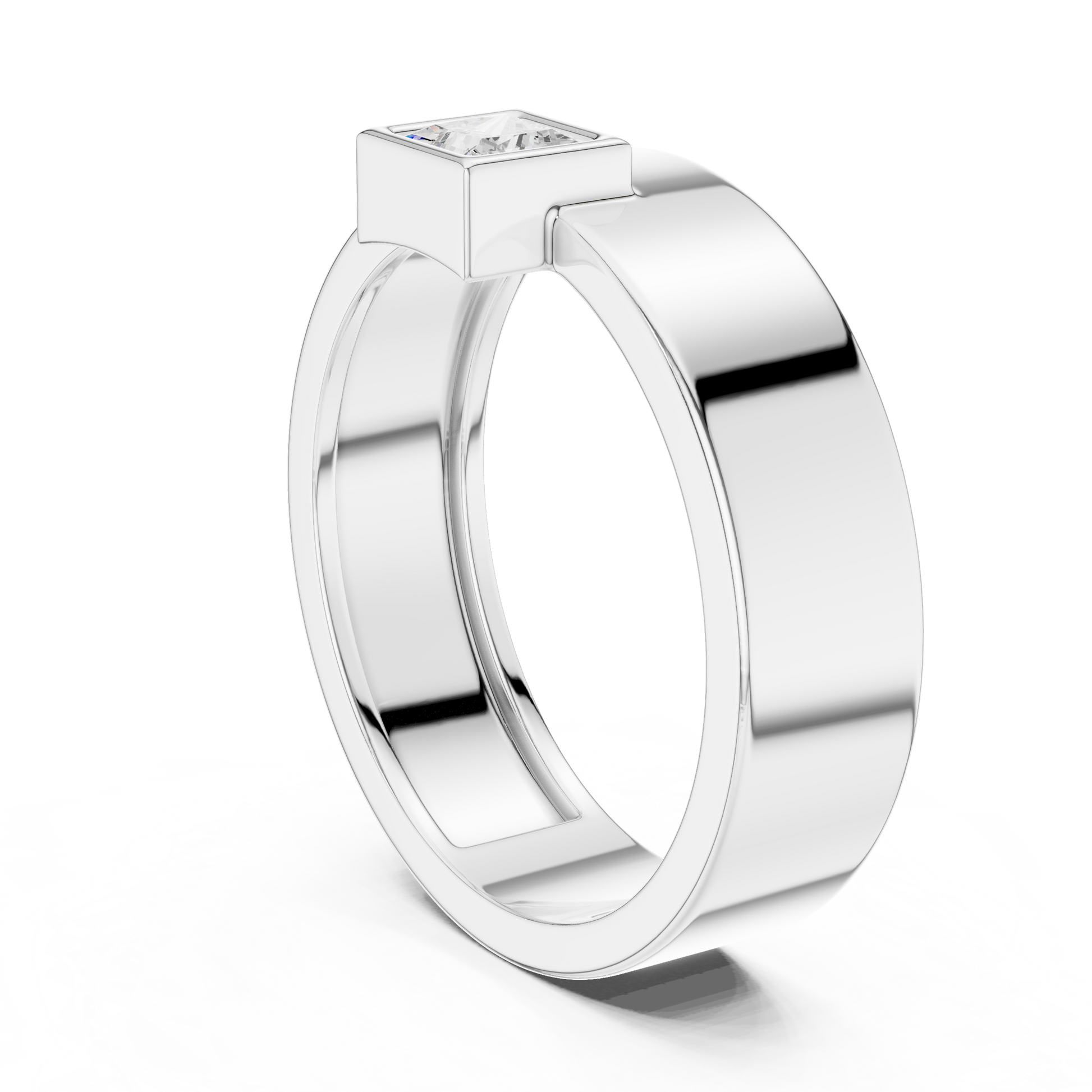 Princess Cut Diamond Ring - Minimalist Wide Band - Luxury Engagement Wedding Jewelry
