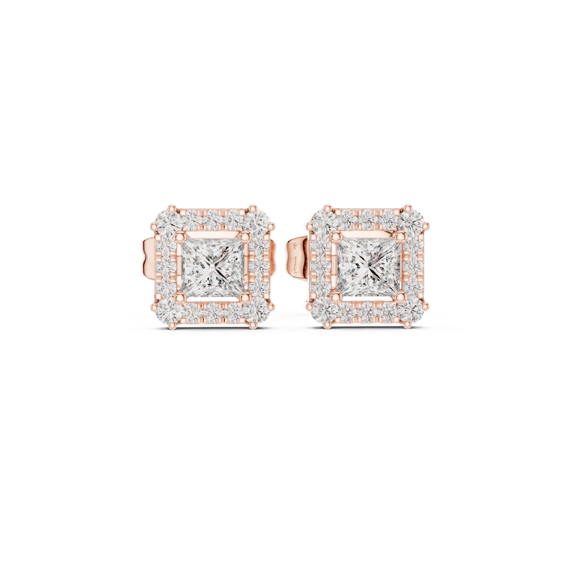 ✧ Earring Type: Princess Cut Square Halo Stud Earrings