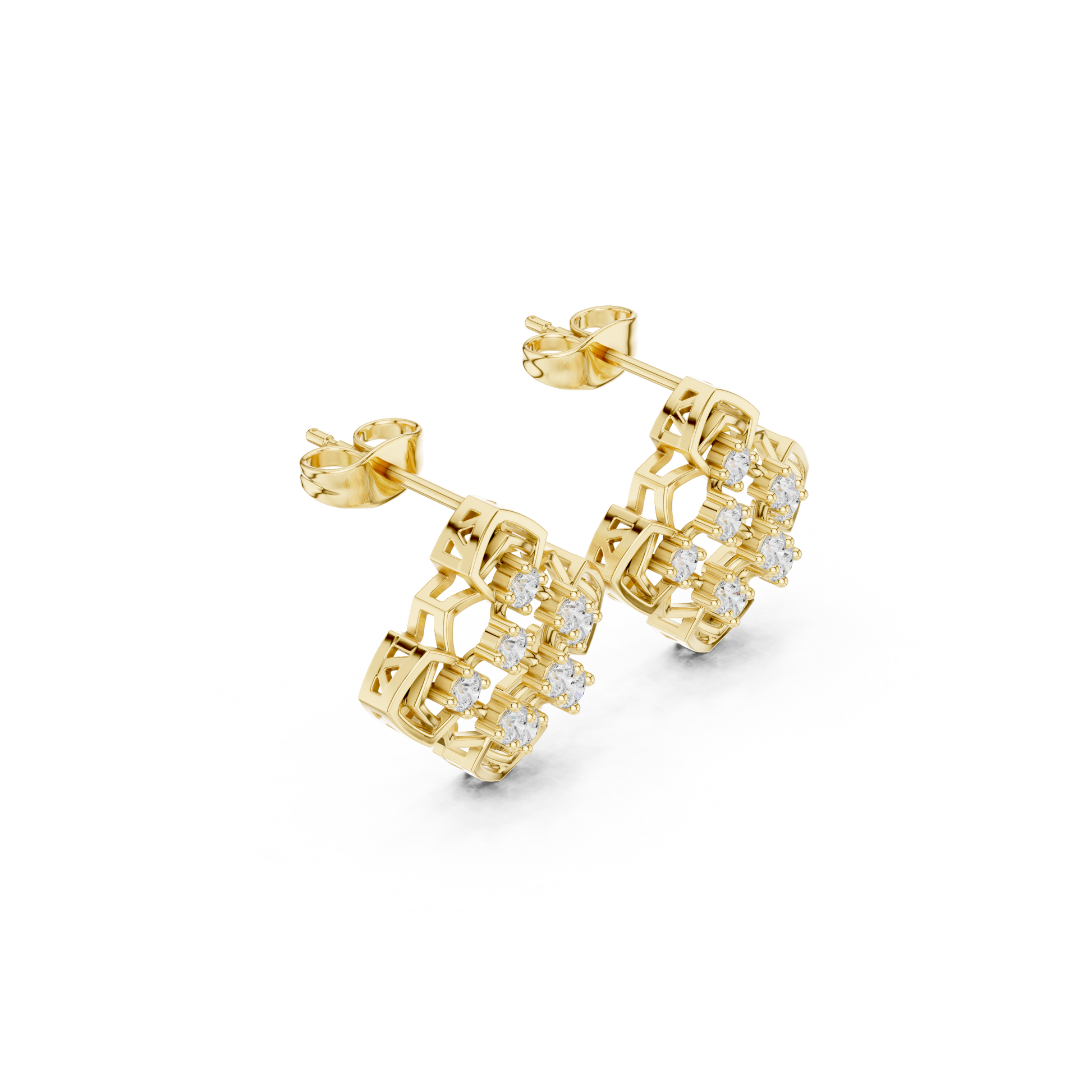 Quantum Lace Diamond Hoops – Sculpted Gold Grid Studs, Rare Luxe Earrings