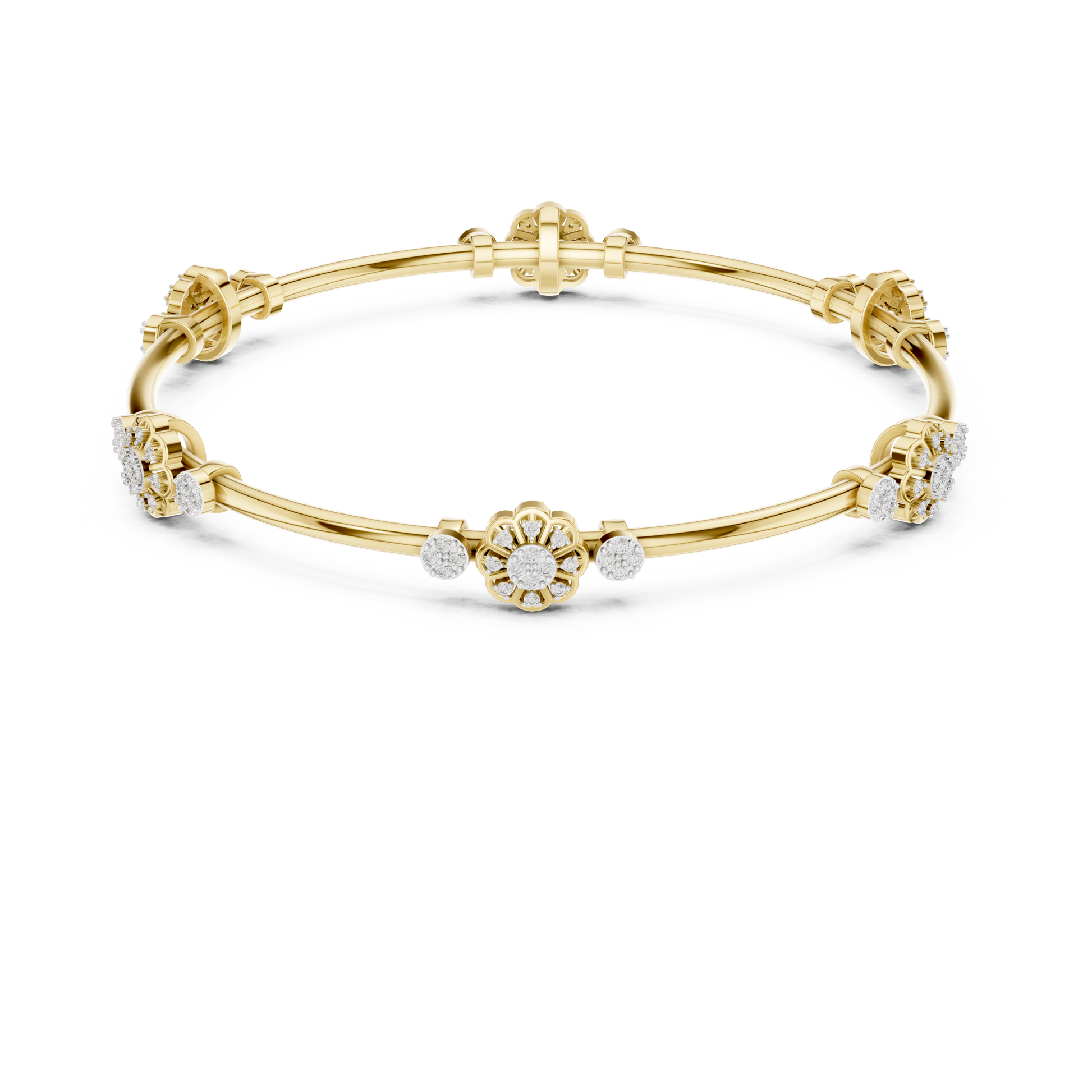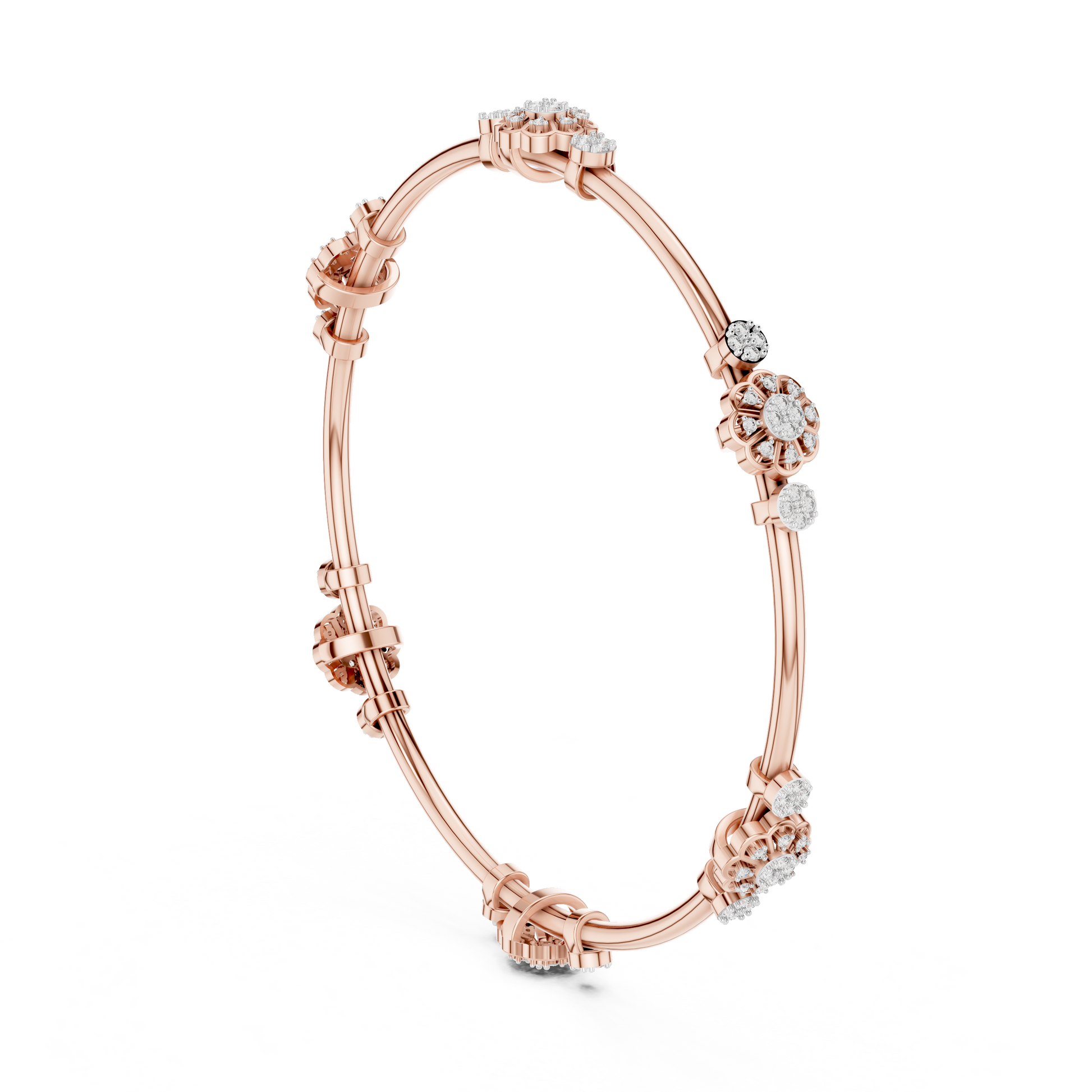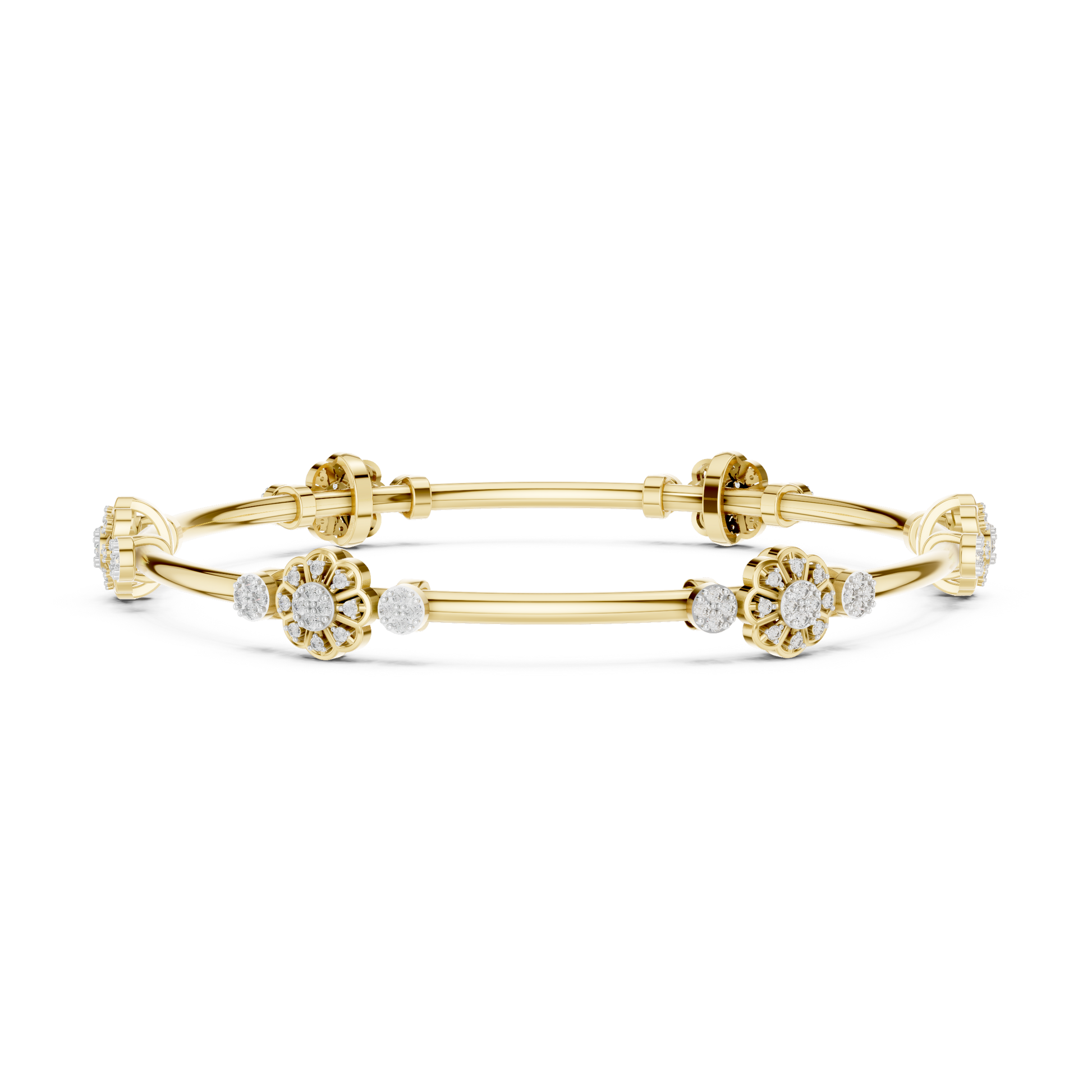 ✧ 360-Degree Sparkle: The floral stations are strategically placed so that no matter how the bangle turns on your wrist, diamonds are always visible.