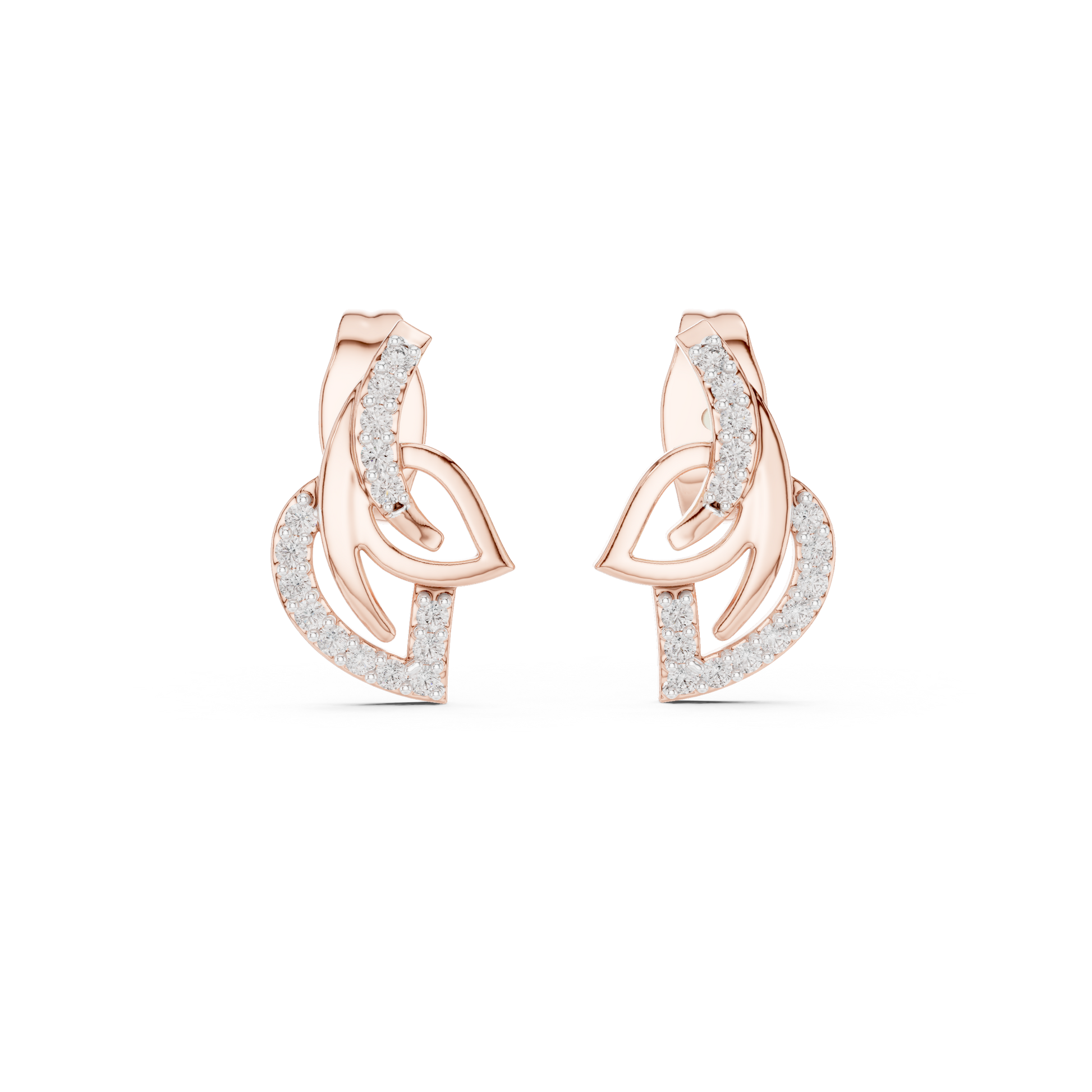 Modern artistry with these Abstract Flame & Leaf Earrings. Breaking away from traditional solid shapes, this design celebrates the beauty of "negative space." The silhouette mimics a dancing flame or a stylized leaf, featuring a striking split-shank architecture. One curve is crafted from high-polished solid gold, while the opposing curve is paved with brilliant stones, creating a floating effect on the ear. These are not just earrings; they are conversation starters designed for the woman who appreciates bold, geometric elegance and fluid design.
