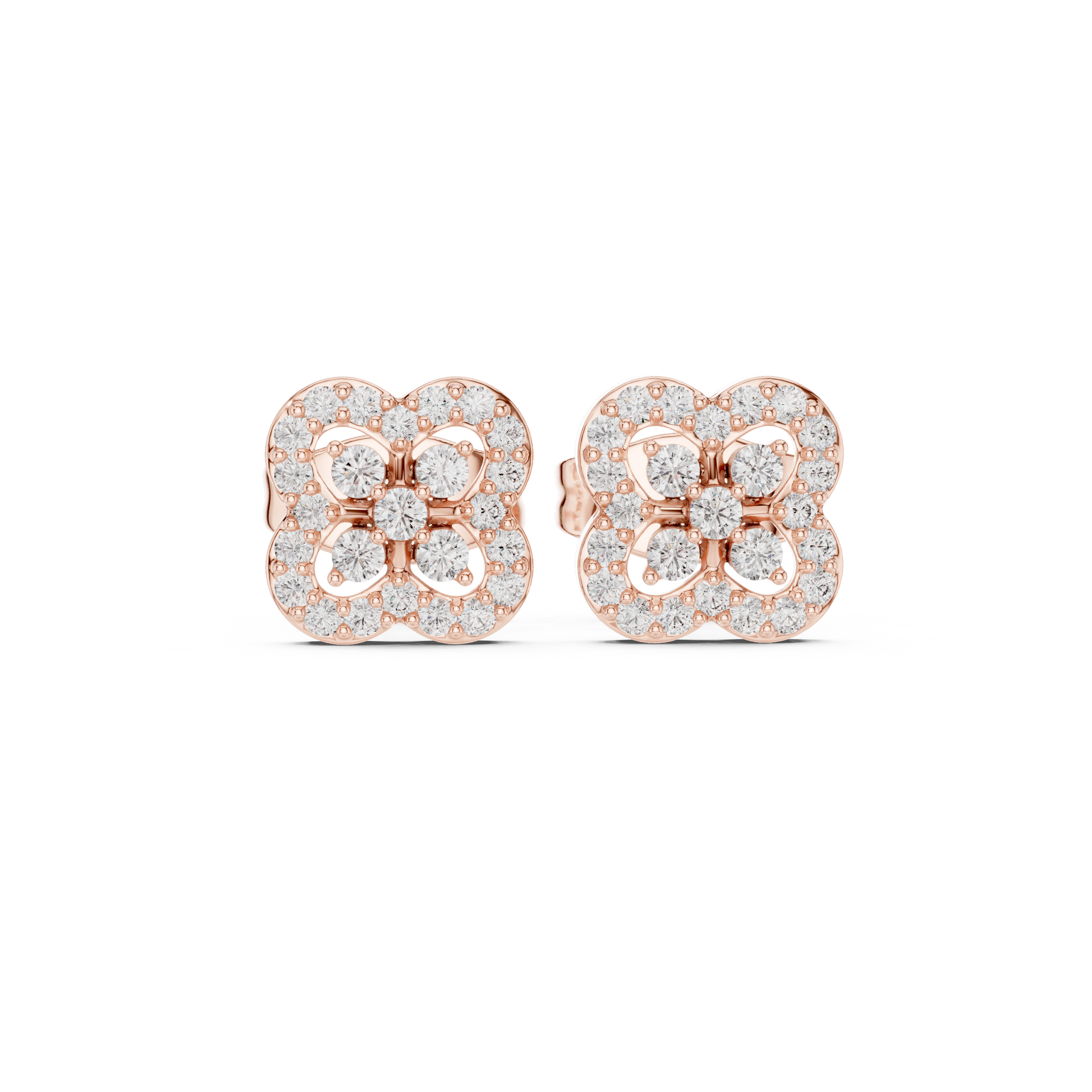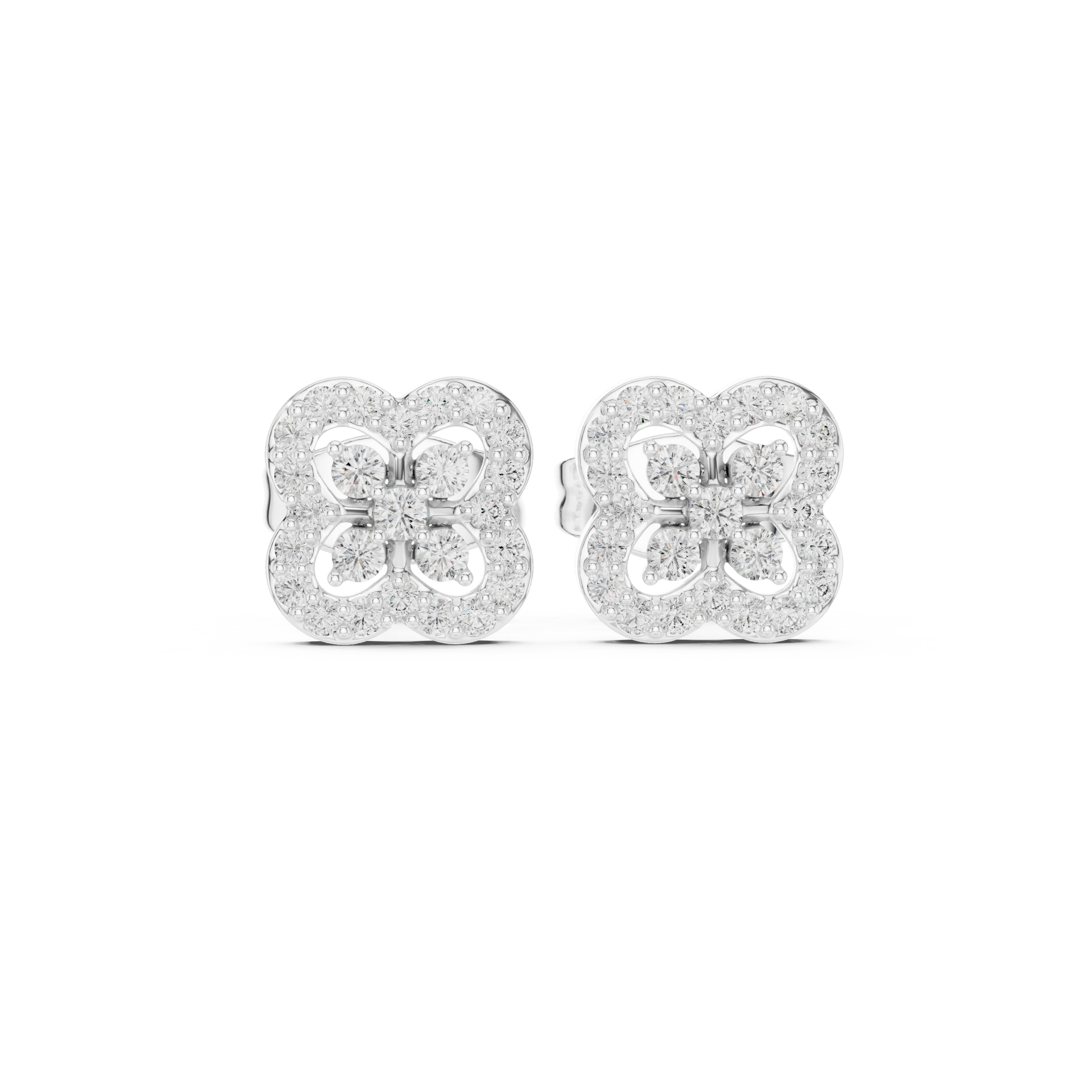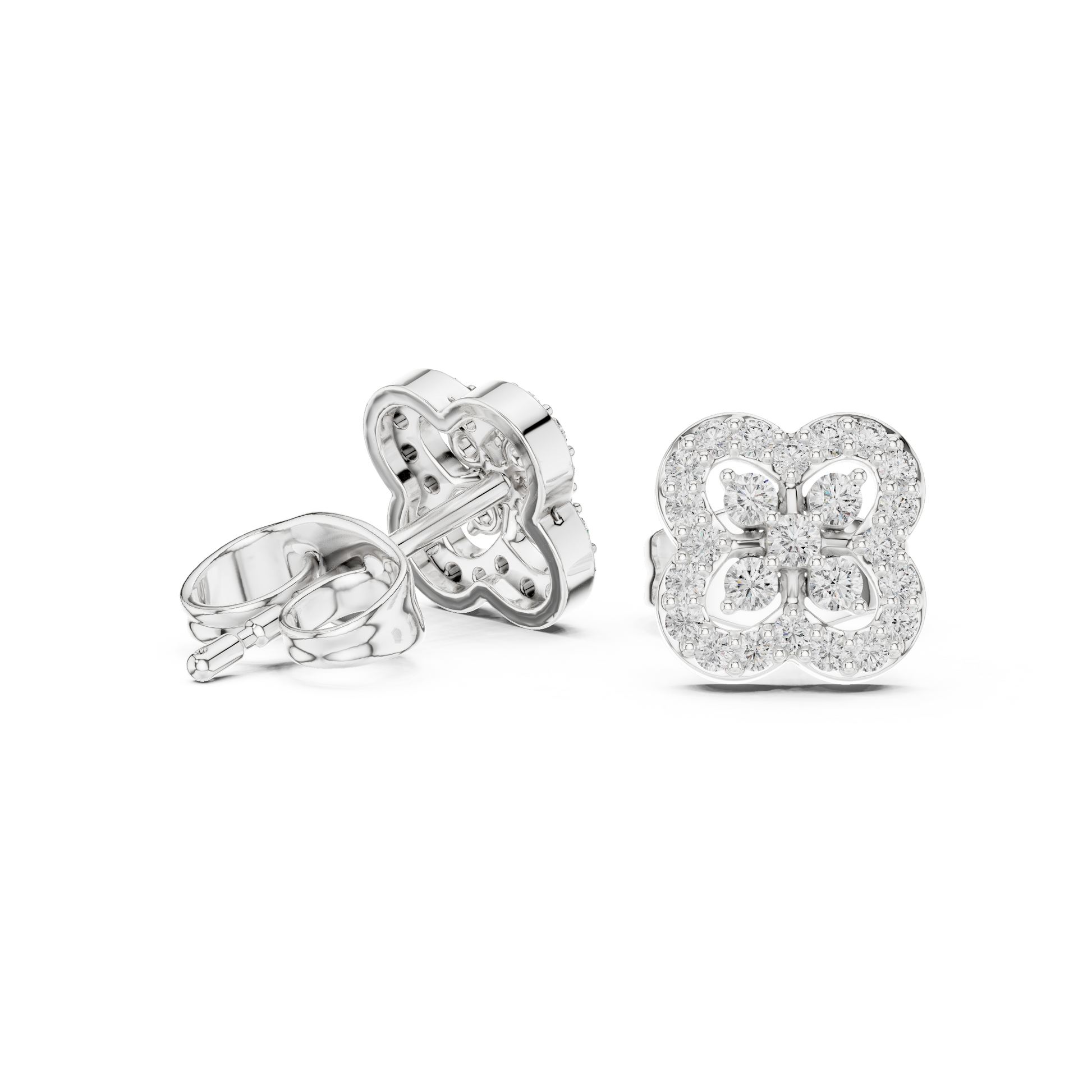 Sovereign Clover Diamond Stud Earrings • High-Class Floral Sparkle • Timeless Luxury Gift