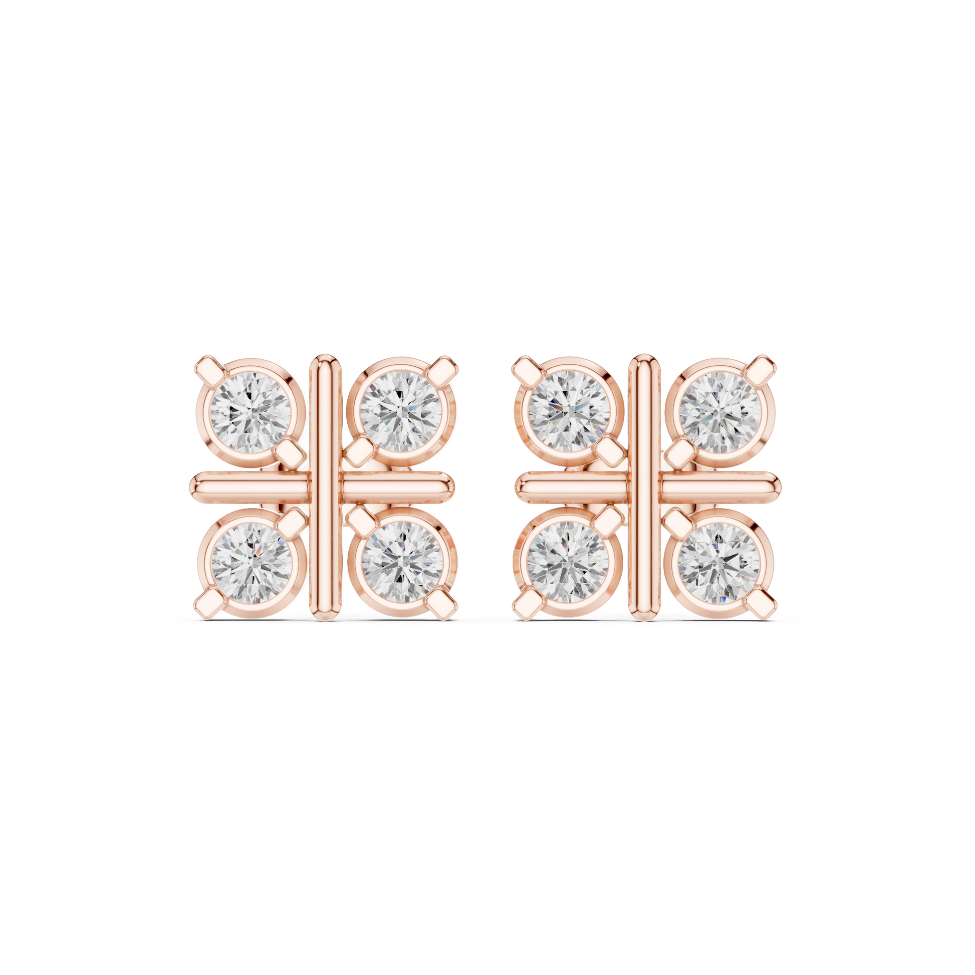 Clover Shape Diamond Stud Earrings | Premium Cluster Studs for Daily Wear | Quad Diamond Stud Earrings for Women | Elegant Bezel Cluster Clover Design
