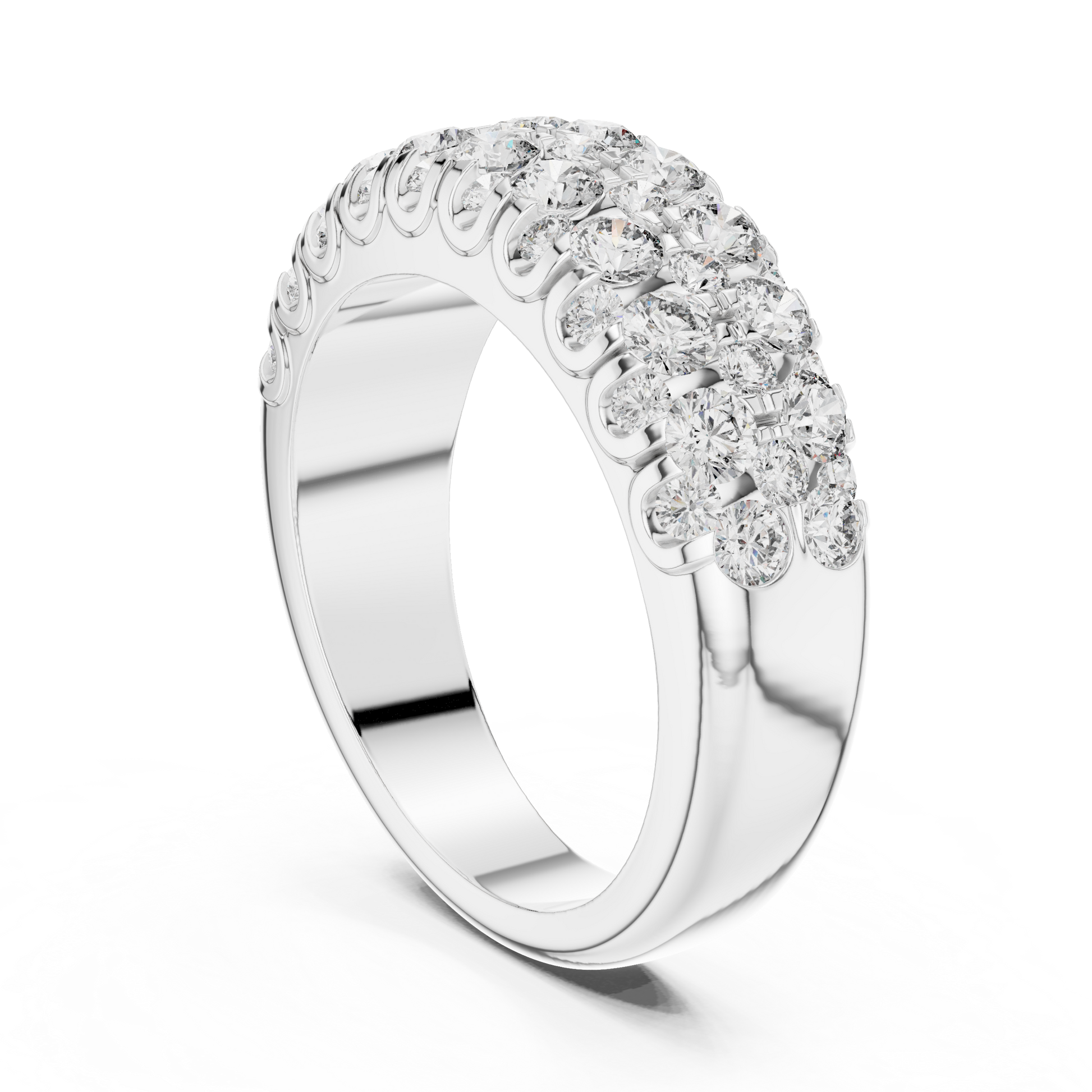 Triple Row Diamond Band – Wide Sterling Silver Anniversary Band, Statement Sparkle Gift