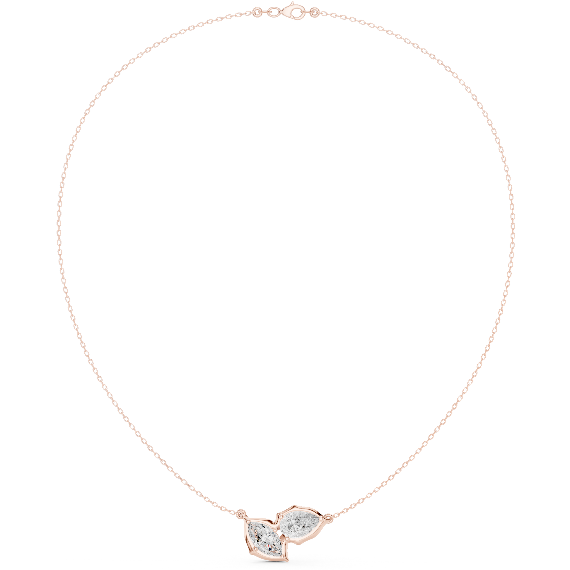Luminous Double Marquise Necklace | Nature Shaped Diamond Motif | Refined Contemporary Bridal Accent Jewelry
