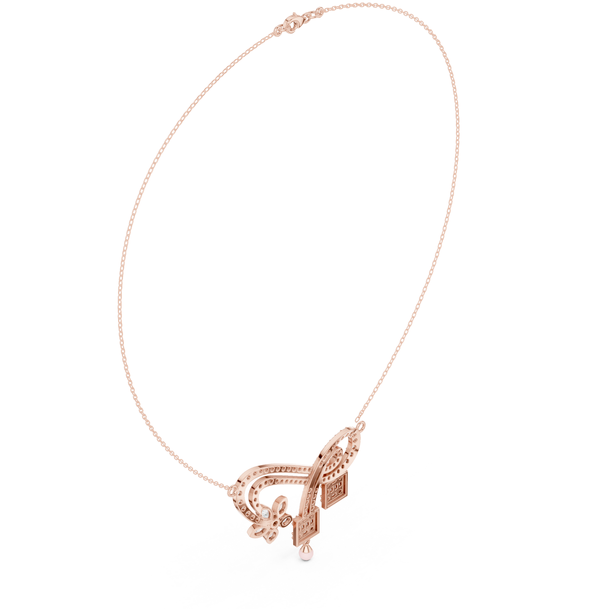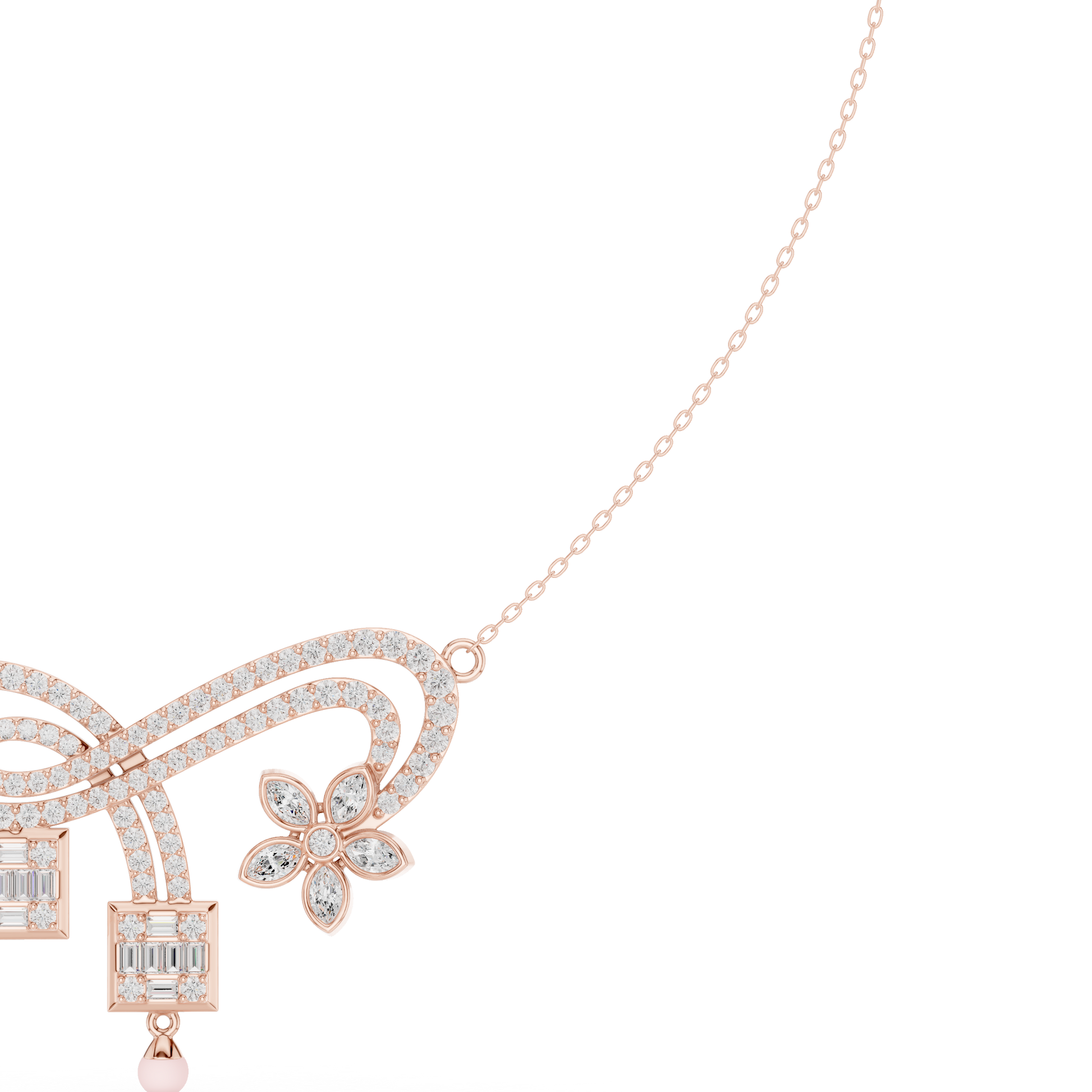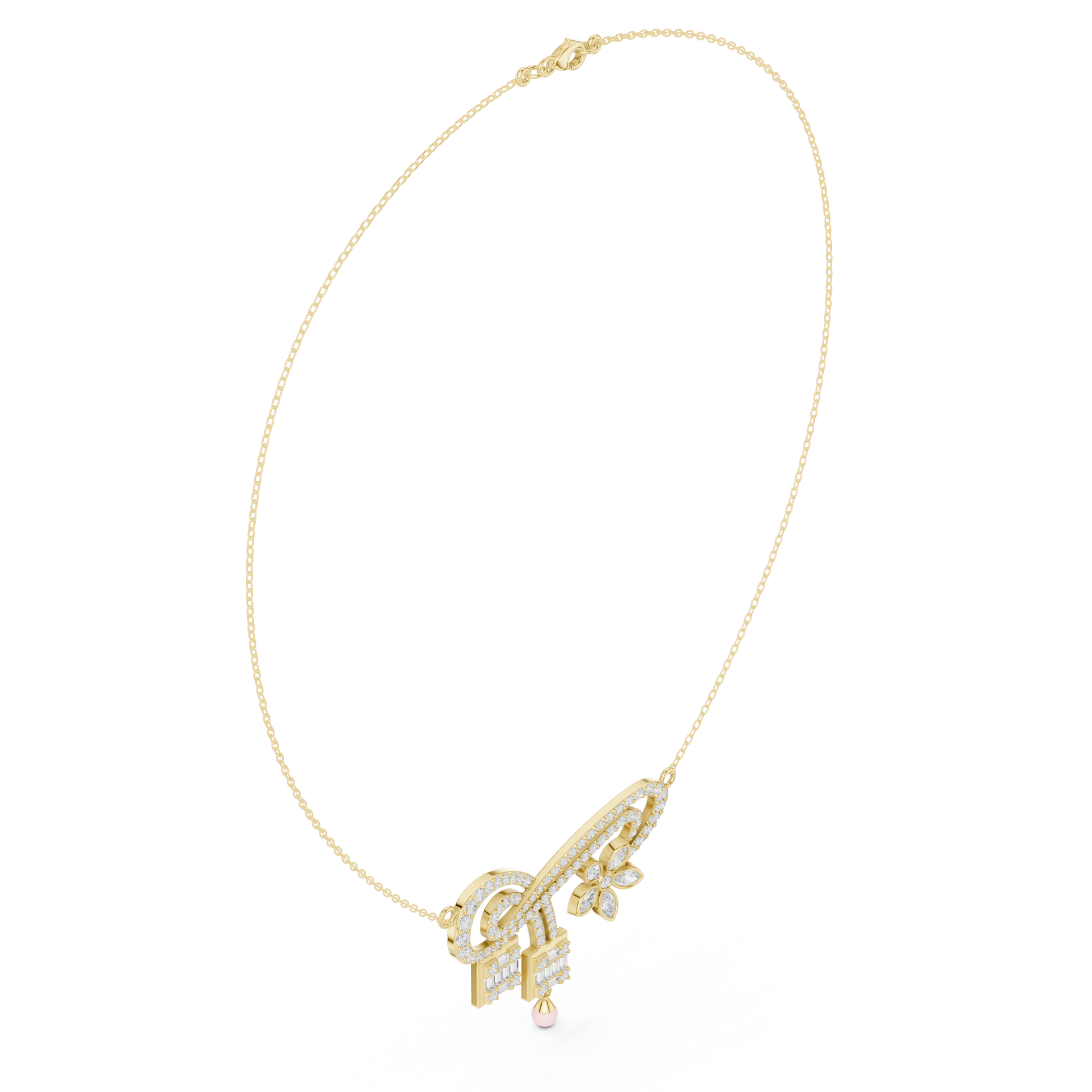 | Pendant Motif | Curved Arc with Floral Diamond Accent |