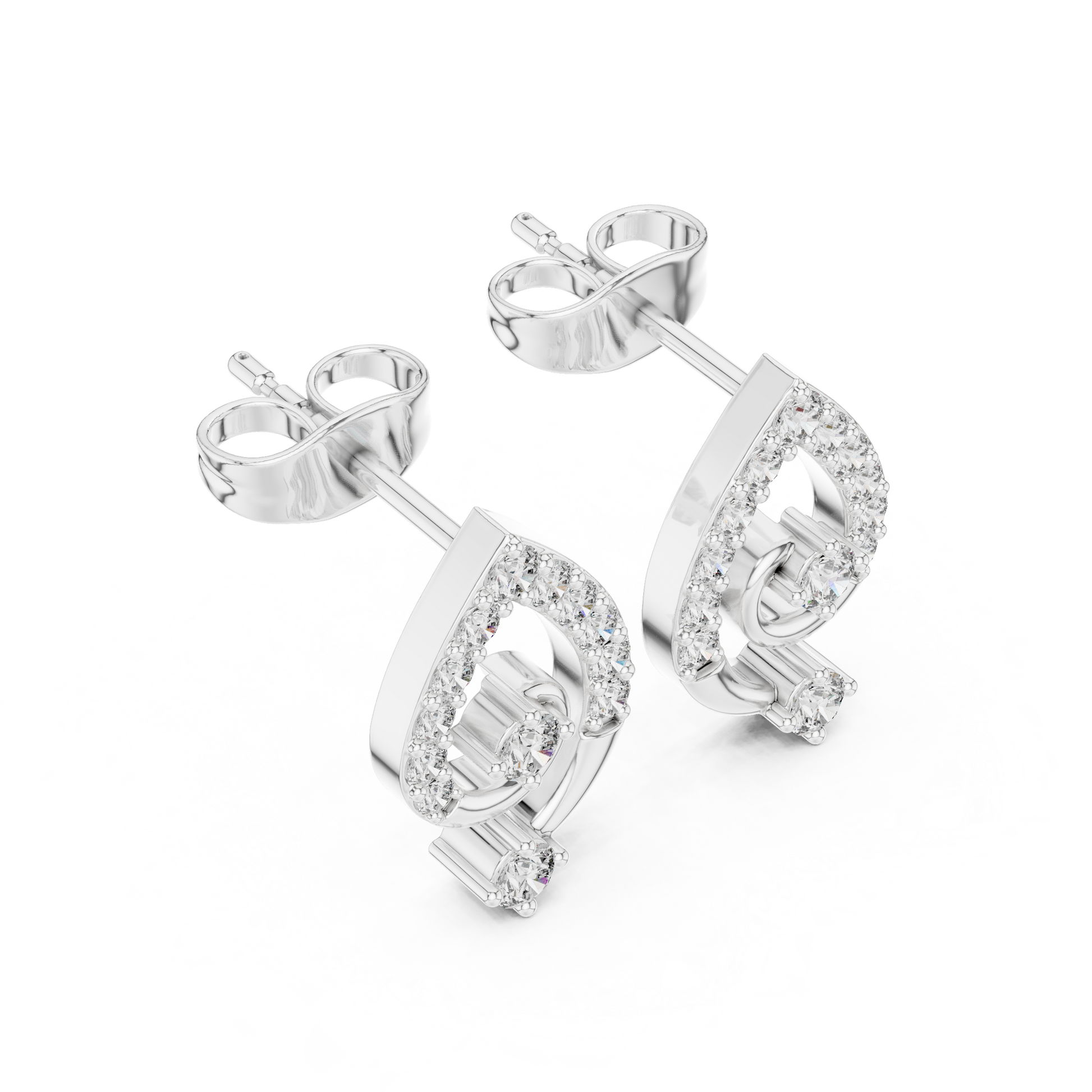 Designed for the woman who loves art and fluidity, this pair features a mesmerizing "infinity swirl" that mimics the grace of a dancing flame or a modern paisley motif. A ribbon of pave-set diamonds curves elegantly, culminating in two brilliant accent stones at the base. These aren't just earrings; they are a visual melody, offering a sophisticated and artistic touch to your daily wardrobe.