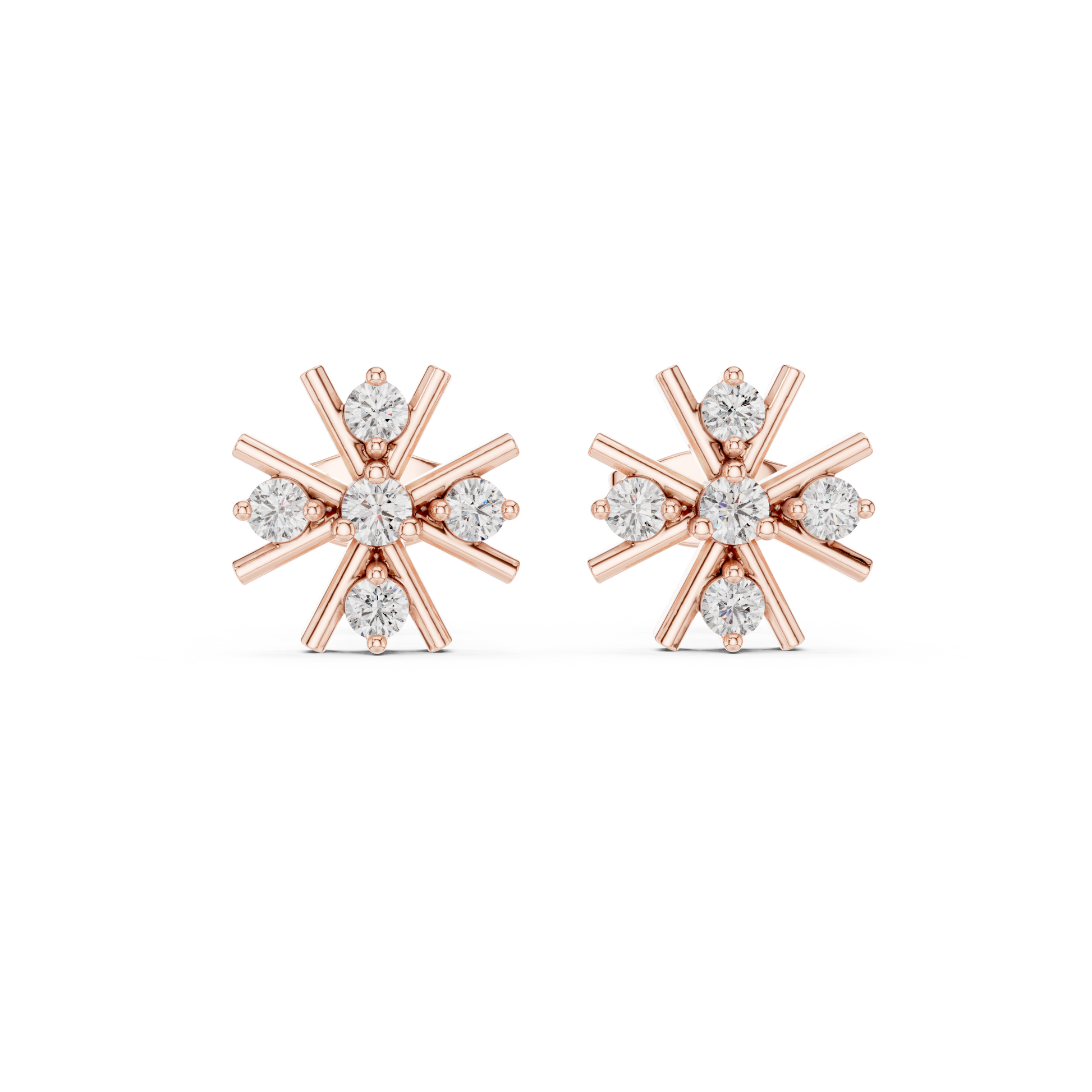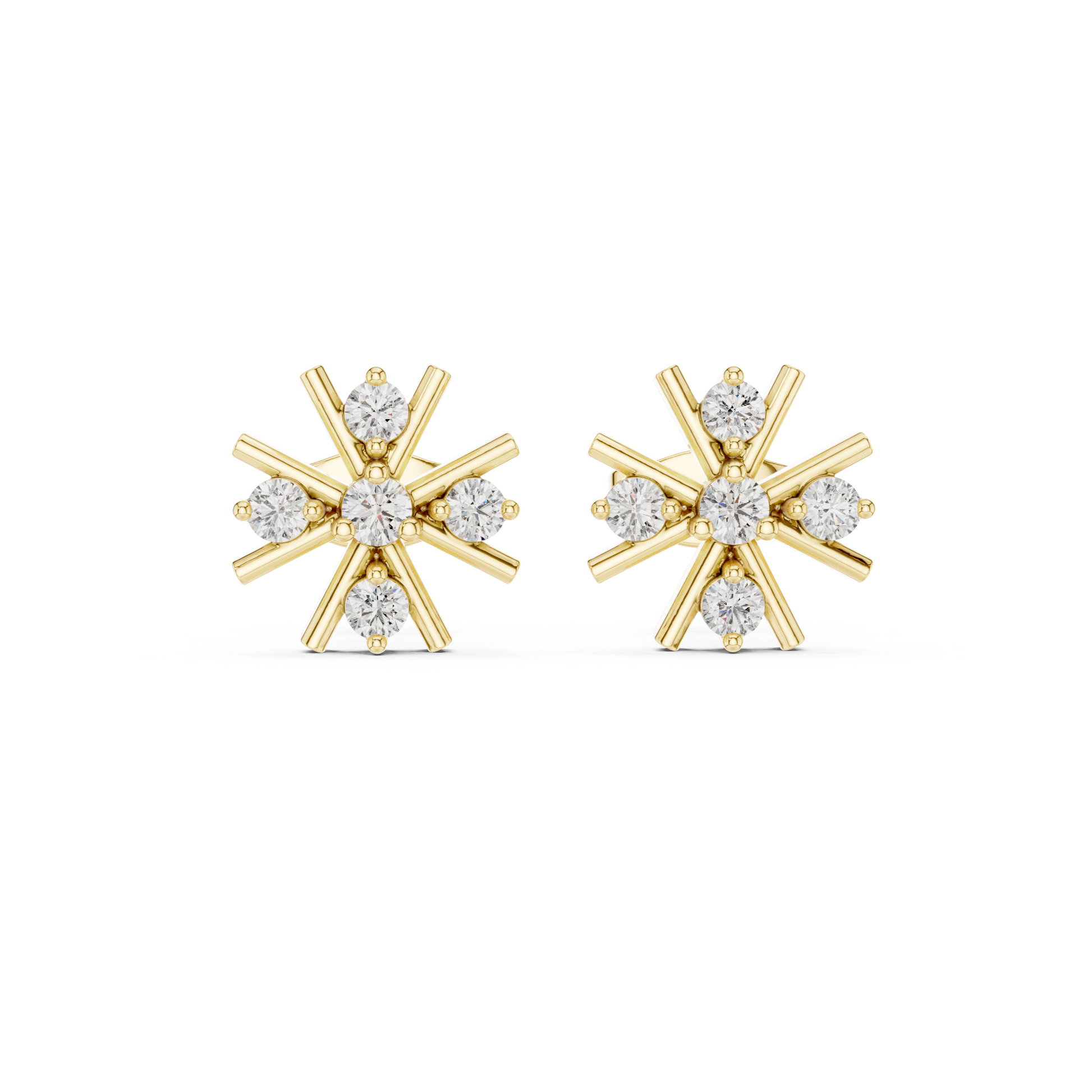 Vortex Star Diamond Studs • Multi-Spike Burst Earrings • High-Shine Gold Luxury Jewelry