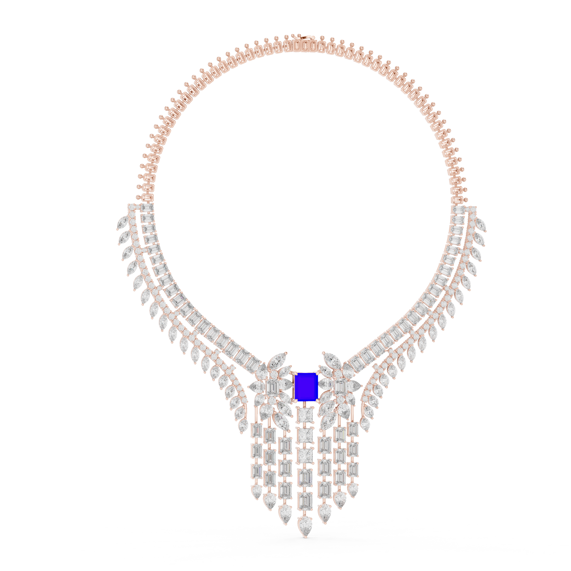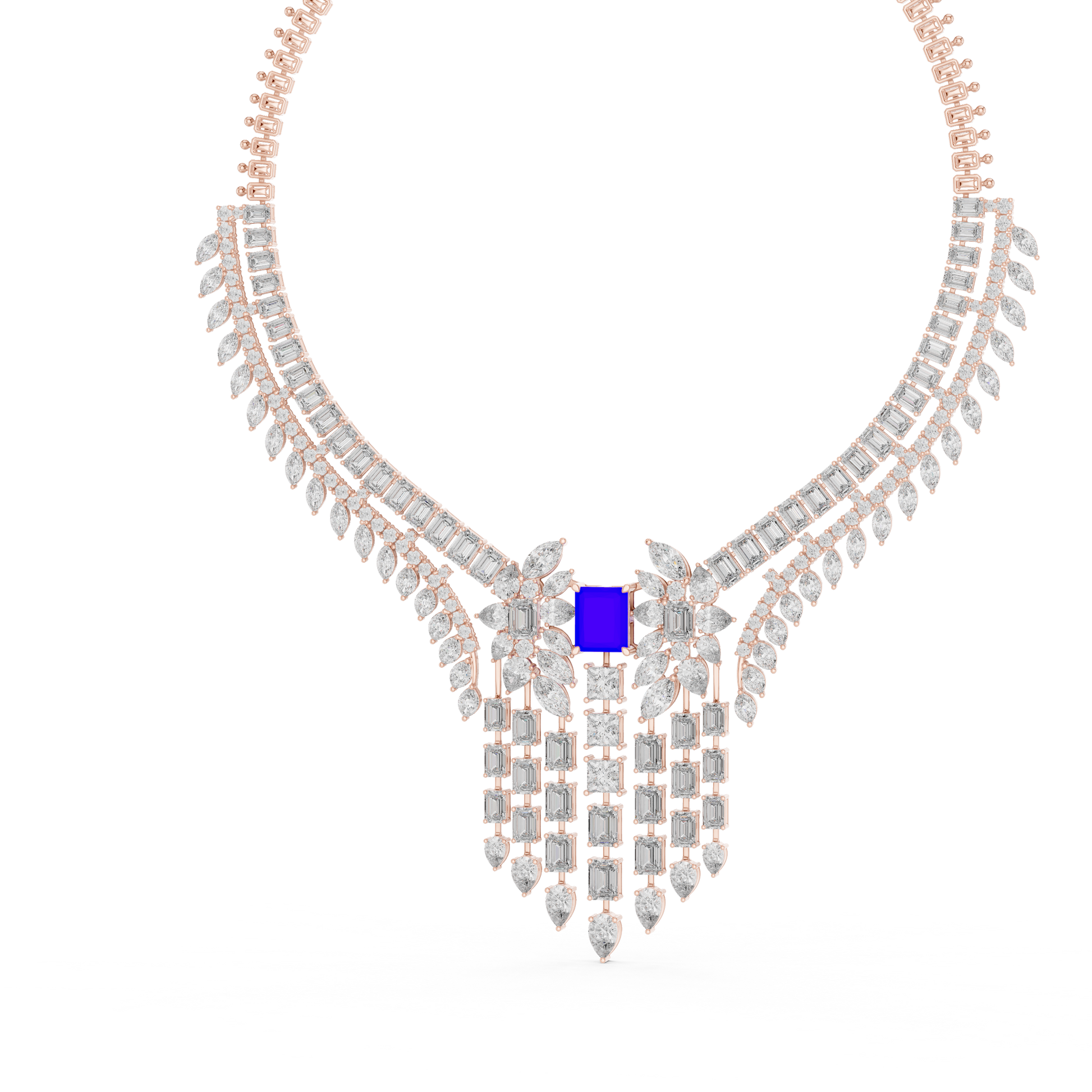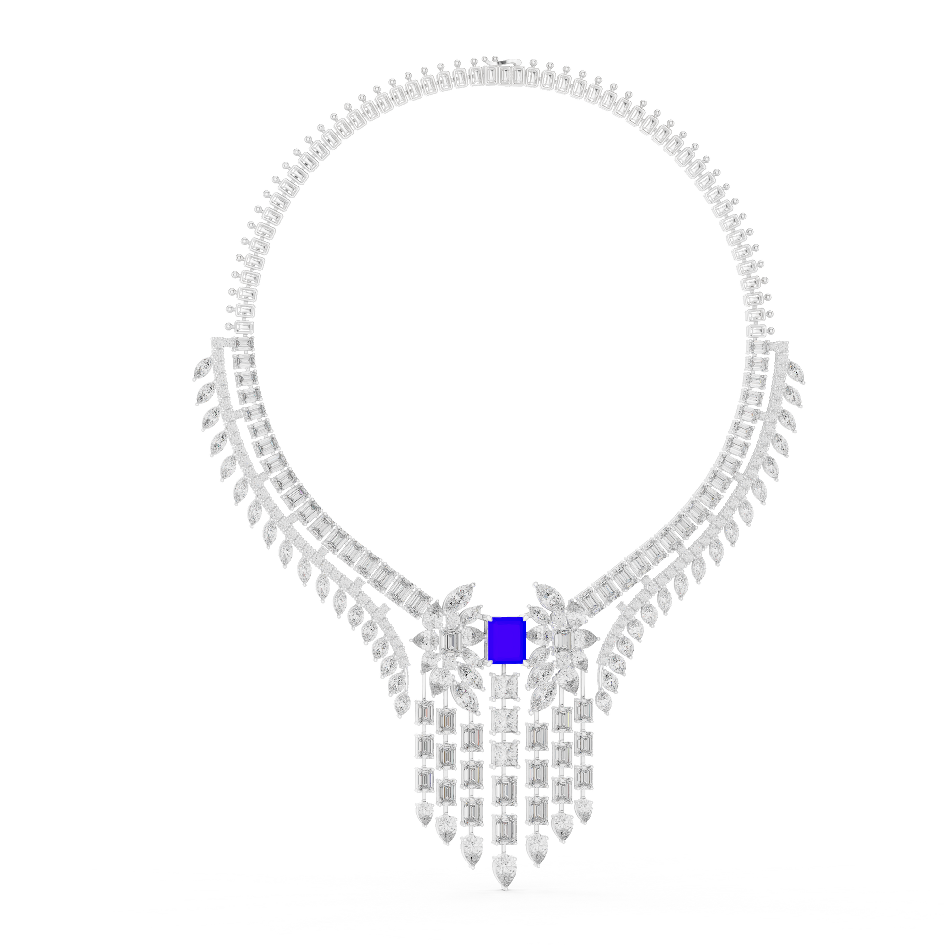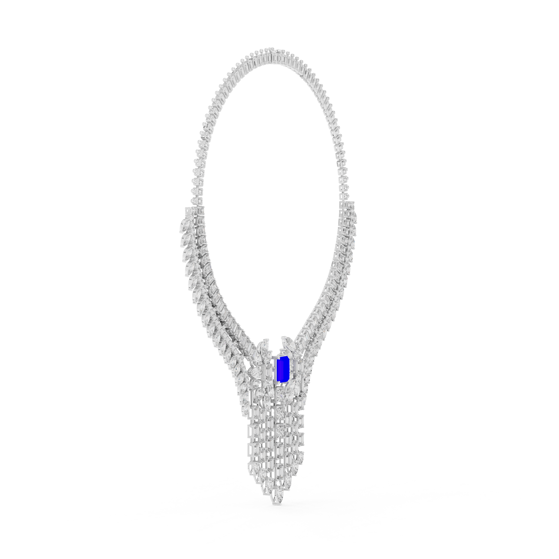 Grand Royal Diamond Necklace - Emerald Cut Detailing - High End Bridal Couture Jewelry